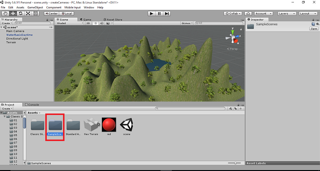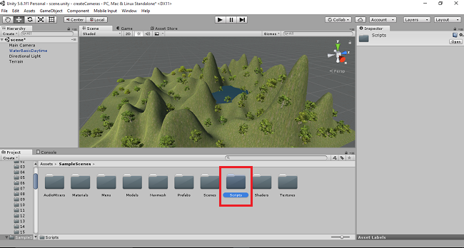 Sample Scene will be displayed. Select and double click the Scripts folder.