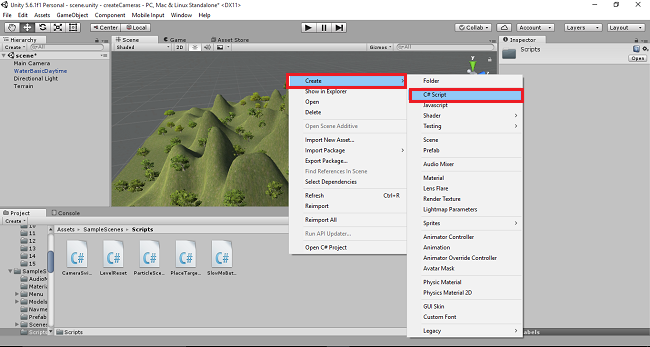 Right click and select Create >> C# Scripts.
