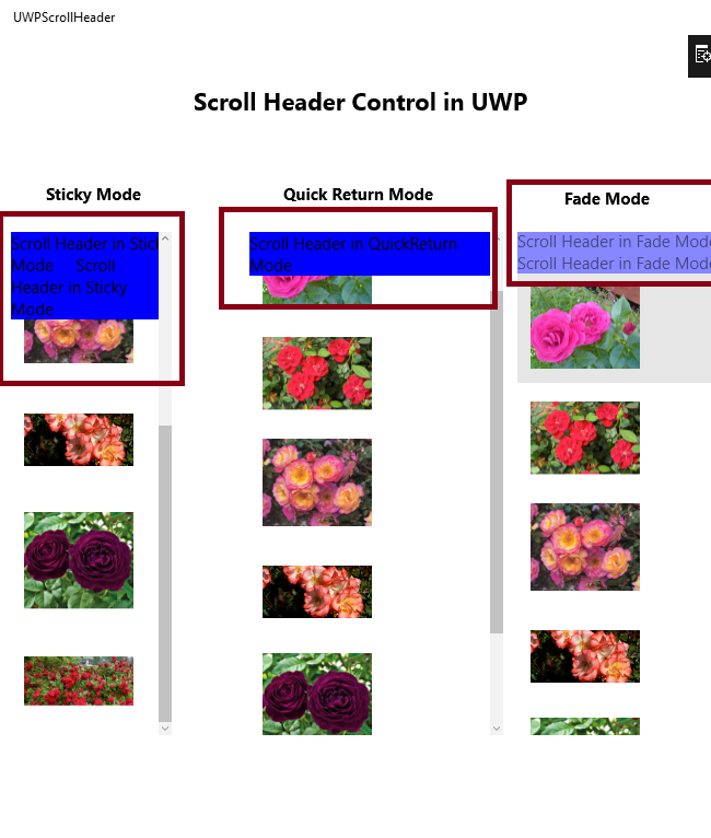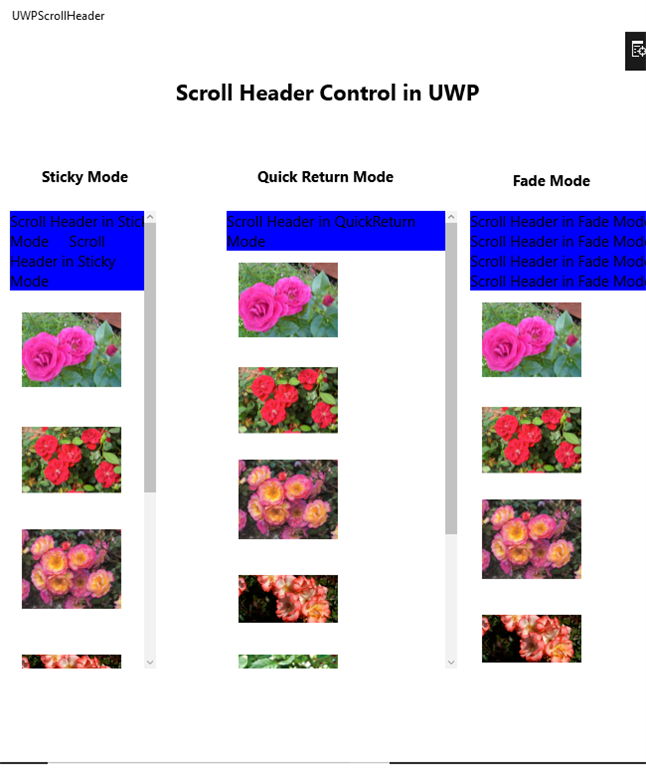 Now, you have successfully tested ScrollHeader control in XAML and UWP environment using Visual Studio 2017.