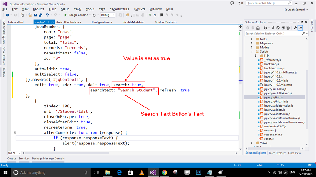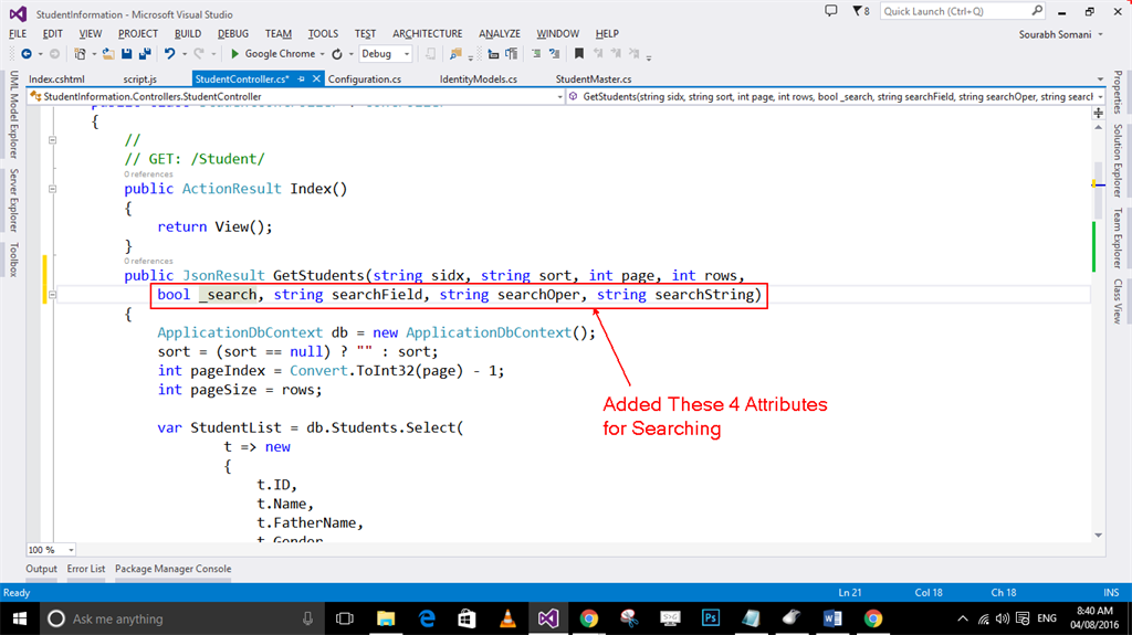 - public JsonResult GetStudents(string sidx, string sort, int page, int rows, bool _search, string searchField, string searchOper, string searchString)