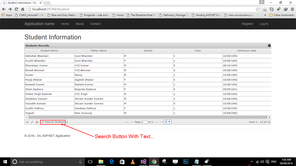 - colNames: ['ID', 'Student Name', 'Father Name', 'Gender', 'Class', 'Admission Date'],