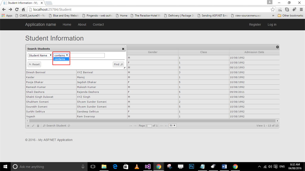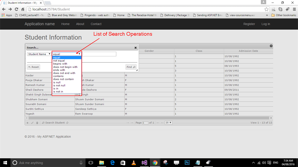 - StudentList = StudentList.Where(t => t.ClassName.Contains(searchString));