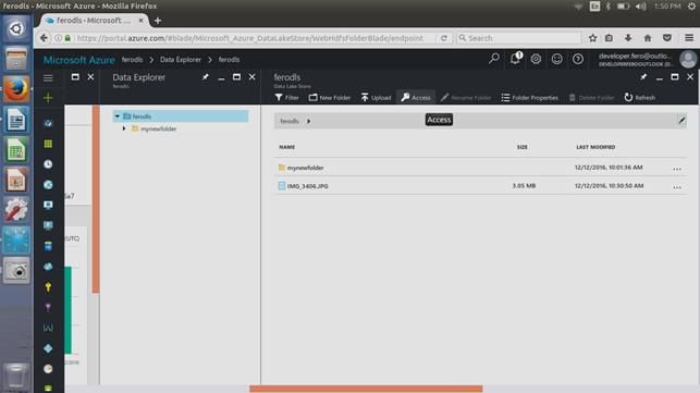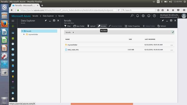 Move to the Azure Data Lake Store account that you have created on the previous demo article. Click on "Access" on the Data Explorer of the respective Data Lake Store account.