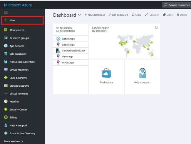 - Click "New" to add a new resource.
