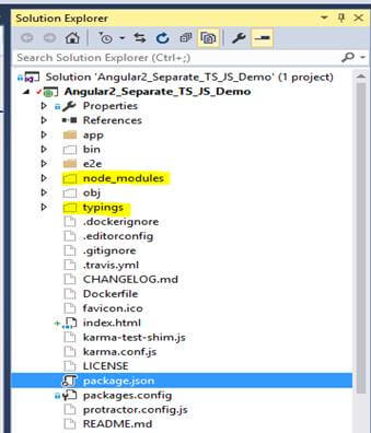 After installing, you should find “node_modules” and “typings” folder in the solution.