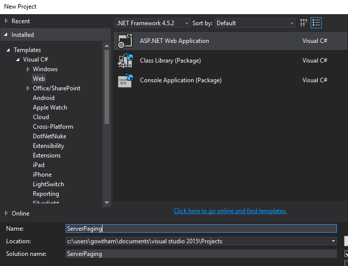 Creating an ASP.NET Web API application using an installed web template in Visual Studio as in the following figures,