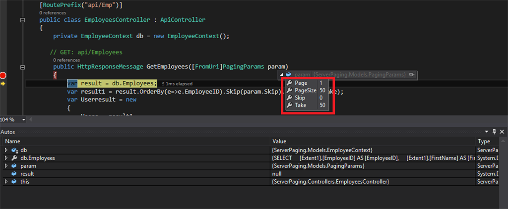 - var result_paging = result.OrderBy(e=>e.EmployeeID).Skip(param.Skip).Take(param.Take);