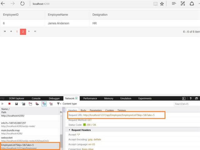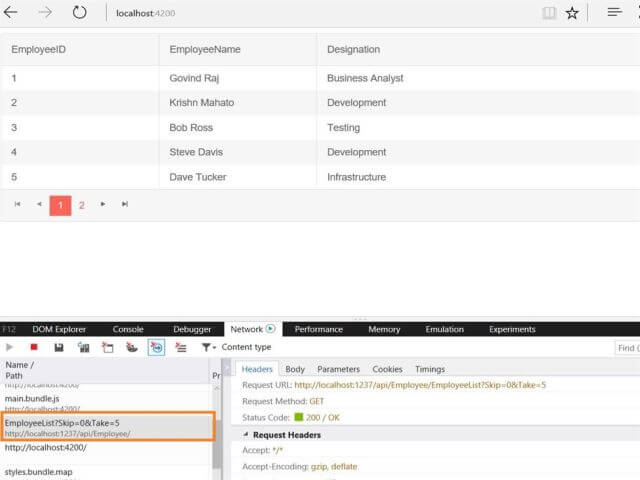 The request sends to the Server when the page loads, as we initialized the value of skip and take which will be 0 and 5 respectively to load the first page