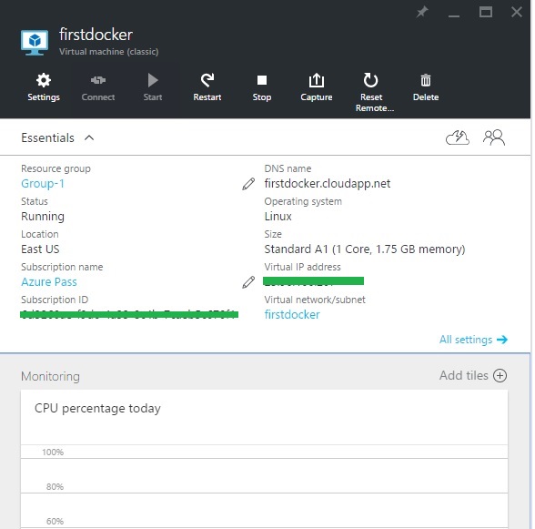After you click Create, you'll get your new Docker on Ubuntu Server being configured on the dashboard.