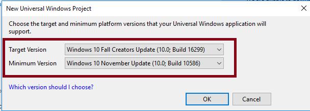 After choosing the Target and minimum platform version that your Windows Universal Application will support, the Project creates App.xaml and MainPage.xaml.