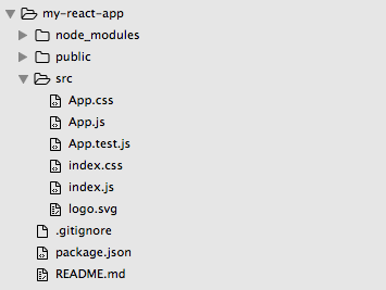 When running the above commands in Terminal or Command Prompt, it will create a folder named “my-react-app” with all the ingredients for a React app, inside this folder. The folder structure for the newly created React app should look like the following.