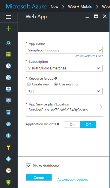 Provide all the required credentials such as name, subscription, and resource group and click create.