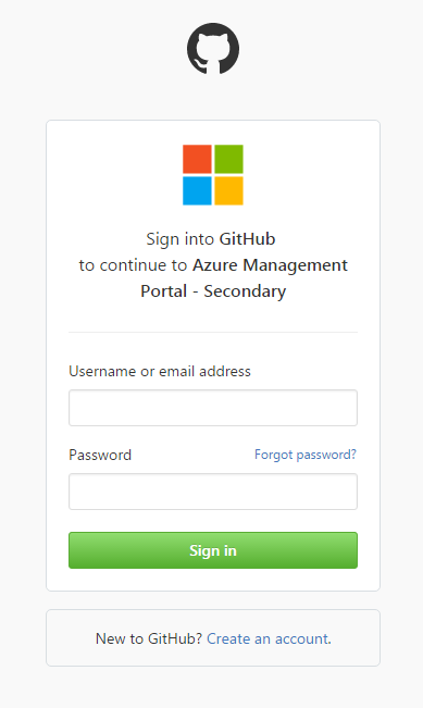 Then a pop up appears that provides a GitHub account username and password for validating your account to connect with the Azure web app.