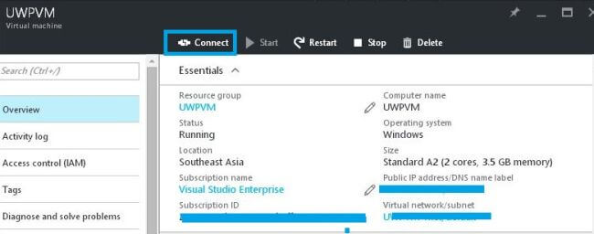 Finally, we will be connected through remote desktop directly into your new virtual machine, running Visual Studio Enterprise 2015 with UWP Tools and Azure SDK, we selected.