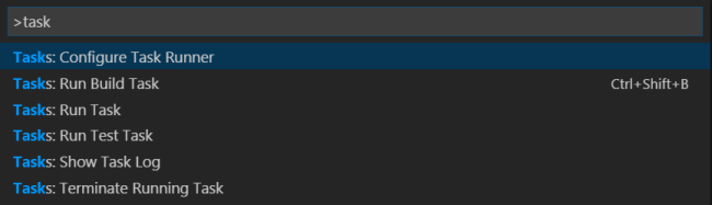 In the Command Palette (Ctrl+Shift+P), you can filter on 'task' and can see the various task related commands.