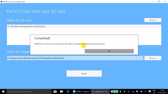 You will be getting this screen where your Windows 10 IoT core Operating System is written towards your SD card.