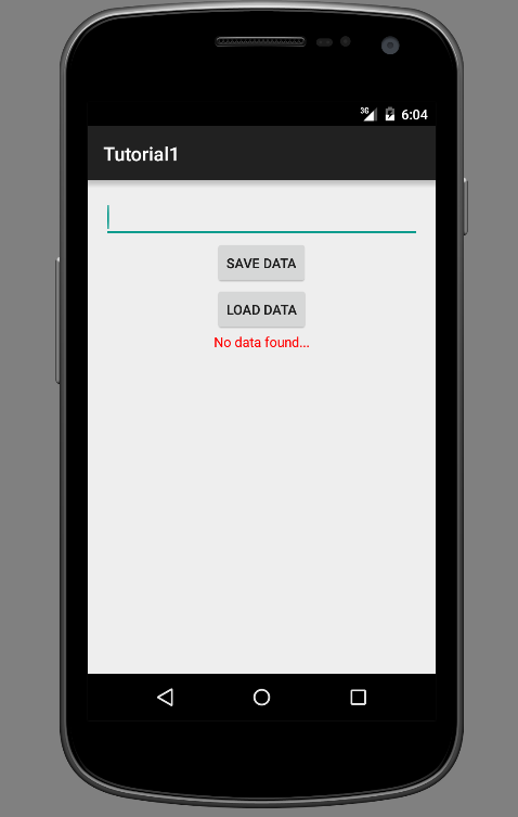 In this article I am going to describe an application which has two buttons named Save Data and Load Data: an edit text that the user can give texts that he wants to save, and a text view which will show the status of loading texts from shared preferences.