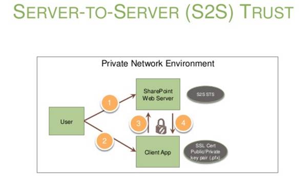 - Requires creating S2S Security Token Service on SharePoint Web server(s)