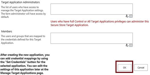 - Now give the appropriate users for Target Application Administrators and Members and click OK.
