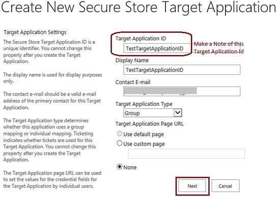 - On creating a new page Enter your Target Application ID, Display Name, Contact E-mail, select your Target Application Type, Target Application Page URL and click Next.