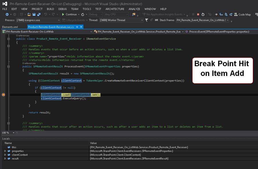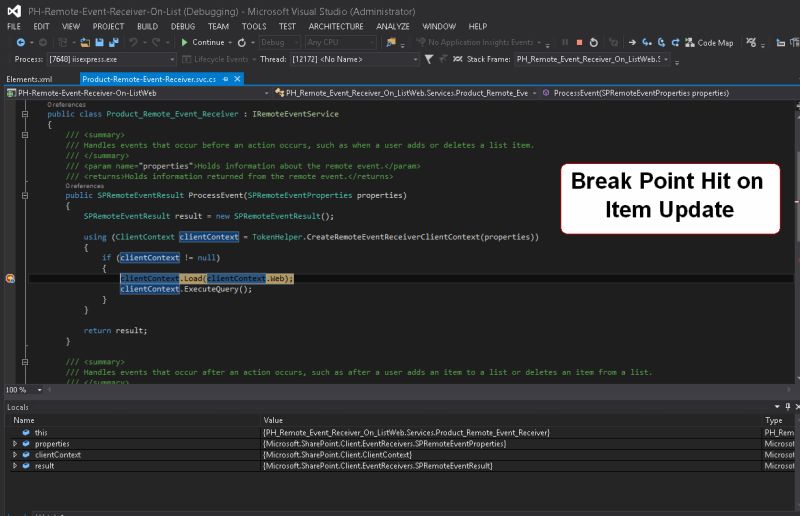 On Item added we can see Breakpoint hit in “ProcessEvent” Method as shown below: