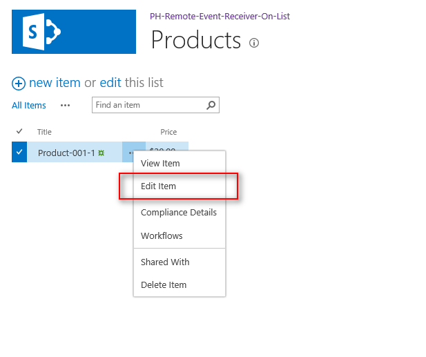 Now in order to test the Event Receiver, let’s create a test item in Products List as shown below: