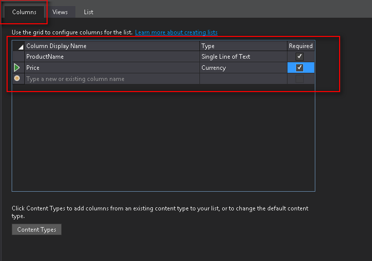 - On Columns Tab, specify the Columns/Fields you need to add to the list.