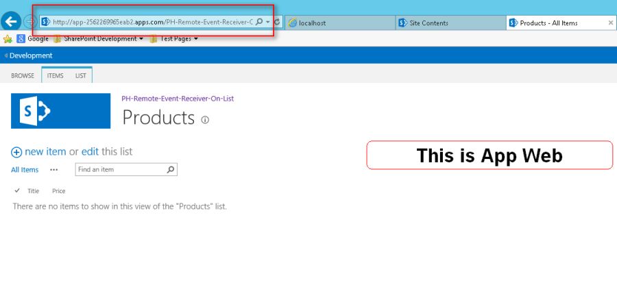 We can ensure the presence of App Web by using SharePoint Manager and inspects Products List that has been provisioned to the App Web during the App Deployment.