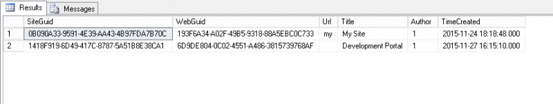 - SELECT SITEID AS SITEGUID, ID AS WEBGUID, FULLURL AS URL, TITLE, AUTHOR, TIMECREATED FROM DBO.WEBS WHERE (PARENTWEBID IS NULL)