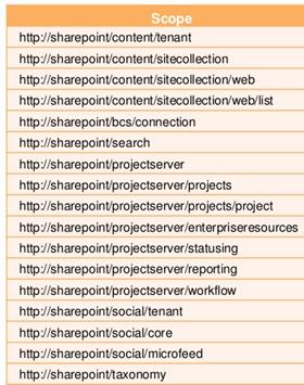 | Tenancy | http://sharepoint/content/tenant | Read, Write, Manage, FullControl |