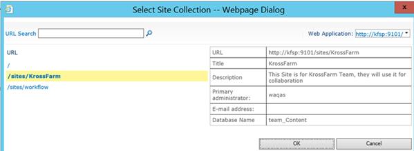 - We want to change the Site collection administrator of Krossfarm team site. Let’s select the correct Site collection.