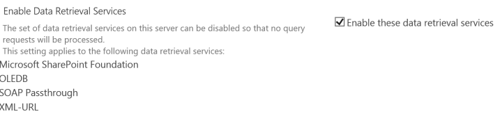 Turns data retrieval services on or off. By default, data retrieval services are enabled. If you plan to turn it off, you should uncheck the box.