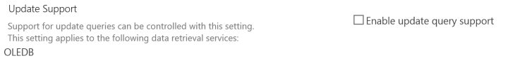 You can enable or disable the support for Updating queries. By default, this option is disabled. Most of the developers opt for this option when you query non SharePoint Databases.