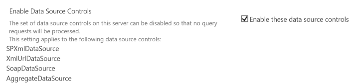 Turns the data source controls ON or OFF on the Server. If this setting is set to disabled, no query results are processed. By default, this option is enabled.