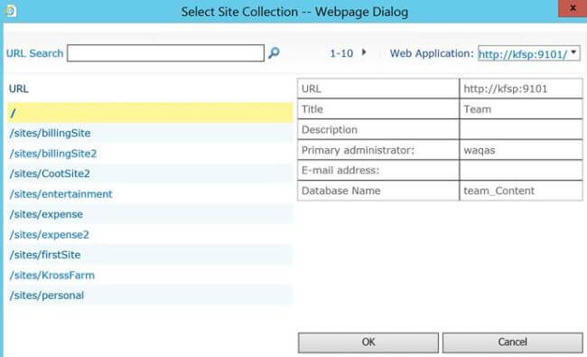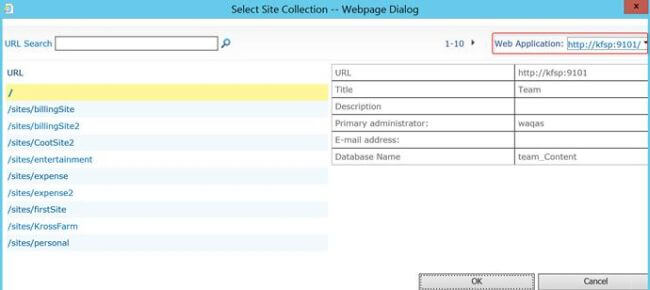 - If the site collections from different Web Applications are different, then click on the dropdown, which is next to Web Applications and select Change Web Application