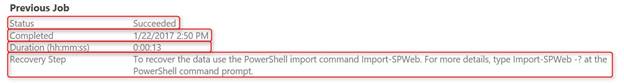 - Recovery step - To recover the data, use the PowerShell import command Import-SPWeb