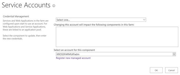 - From Service account dropdown, please select the desired account i.e. krossfarm\kfinst.
