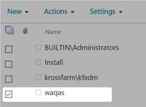 - Select the user on farm administrators group