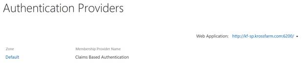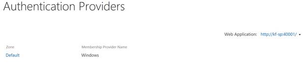 - On this page, you will see authentication provider for all the zones, if configured. In our example, we are going to change the Authentication provider Default zone. Click Default.