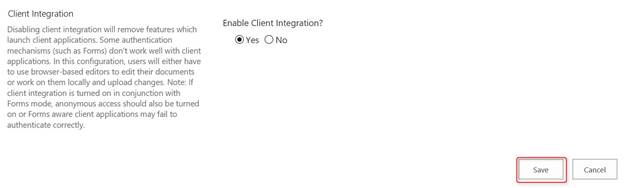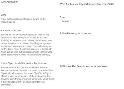 - Client Object Model Permissions requirement- Leave it, which is the default.