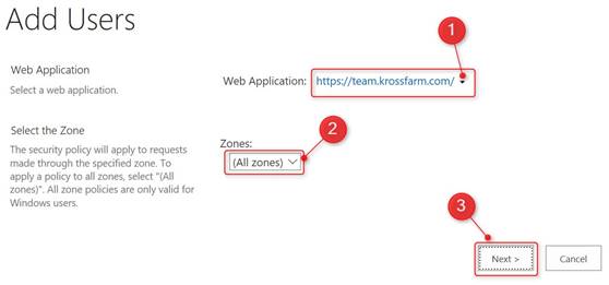 Zone- As we know, a Web Application can be in multiple zones (Default, intranet, internet, extranet and Custom).Thus, we can set the permissions at the single zone or all the zones. When you set a permission for the Web Application, you select the correct zone or select all the zones.