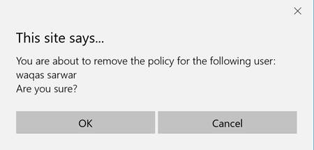 When you click 'Specify Web Application user policy link', you will land on the Policy for Web Application page. This page will let you manage the Web Application User Policy.
