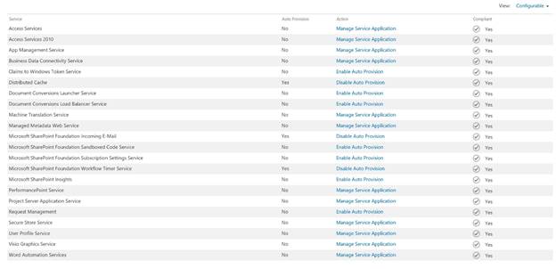 This column lists all the Services instances in the farm, which are provisioned in the farm; i.e., if you provision the Access Service Application, then Access Service instance will be listed. Most Service instances are provisioned along with the Server role (selected at the time of configuration).