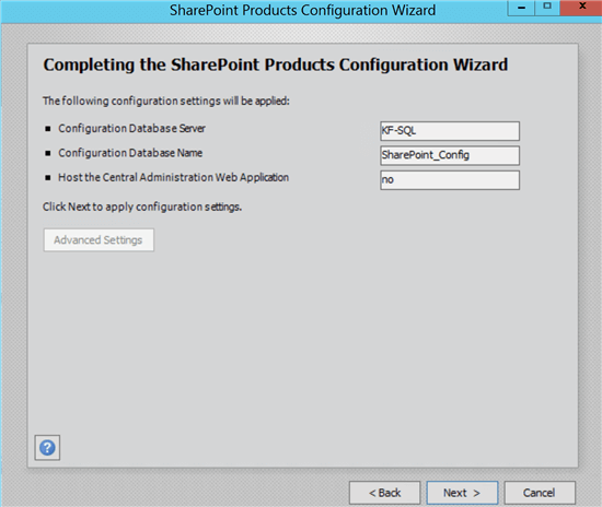 - On completing the SharePoint Products Configuration Wizard, click on the Advanced Settings.
