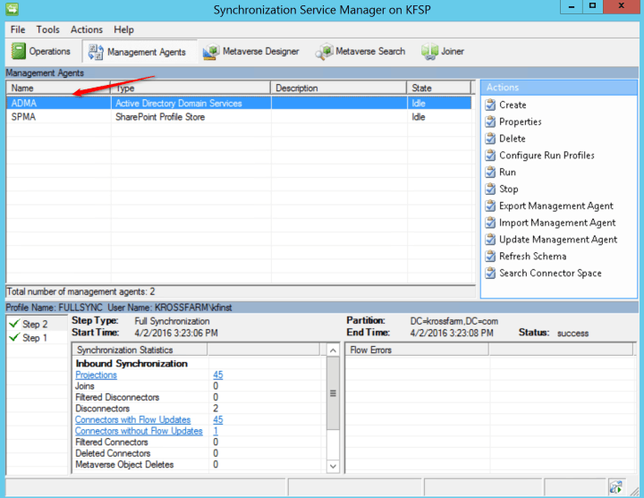 - Click on the "Management Agents" on the Ribbon, then double Click on the ADMA.