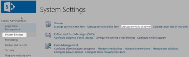 - Click System Settings, followed by Manager on Services on Server under the Servers.
