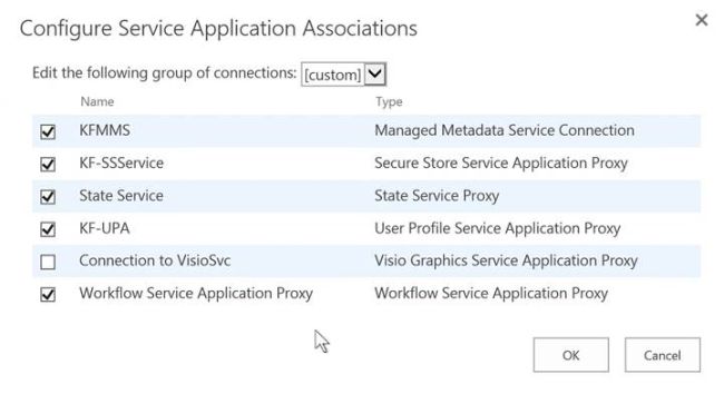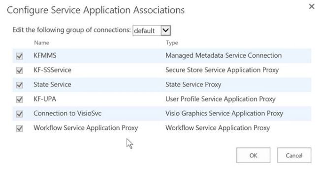 - On this page, please make sure that Visio Graphic Service Application Proxy is associated.