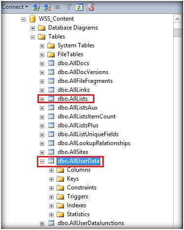 As you can see above, all the information related to the list is stored in the AllLists table, while the content within each of these lists is stored in a single table: AllUserData. Hence, any request to a list to retrieve and show items in a view will hit AllUserData table.