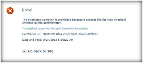 One of the major limitations that exists in Share Point 2010, which was carried over to SharePoint 2013 and SharePoint 2016, is the list view threshold. List threshold is crossed whenever a list view that contains 5000+ items are requested and it will issue the below error message to the end user.