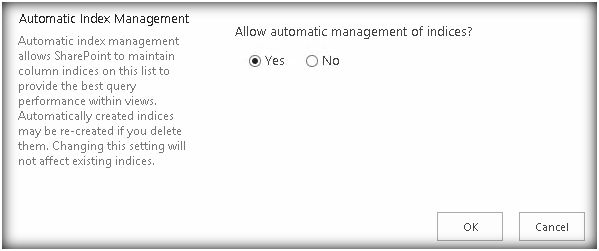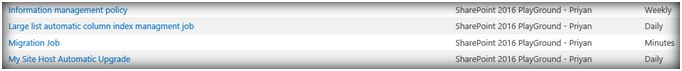 The timer job is by default set to run on a daily basis and automatic index management allows the timer job to maintain the column indices on the lists to provide optimal query performance within the views associated with the list. Though this does not solve the threshold issue completely, it improves the query performance within the view in SharePoint 2016.